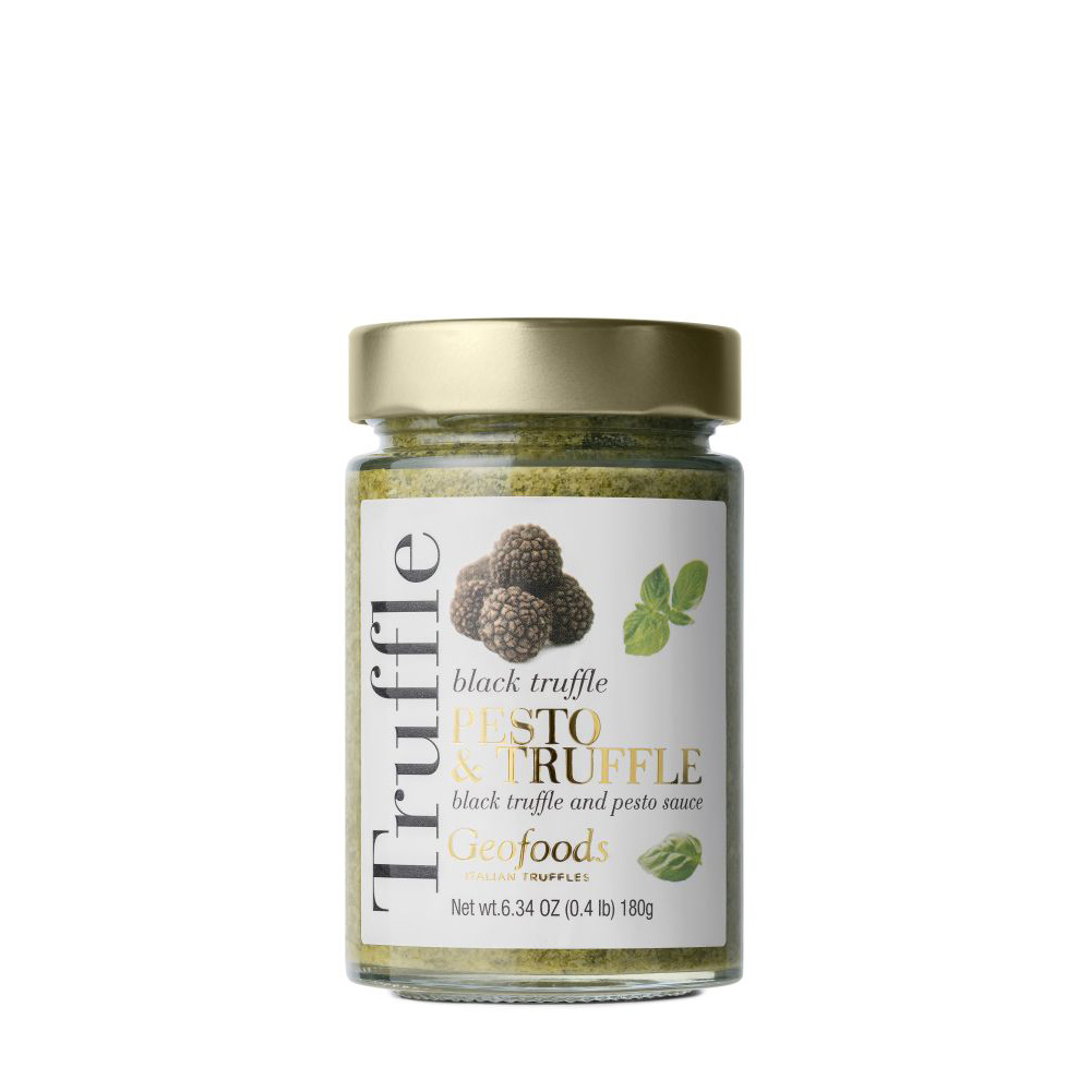 Die Intensität einer Essenz aus schwarzen Sommer Trüffeln vereint mit der Frische von Basilikum, den Nussaromen der Pinien Kerne sowie die Cremigkeit des Parmesan Reggiano ergibt diese kulinarisch ausgesprochen interessante Kombination.