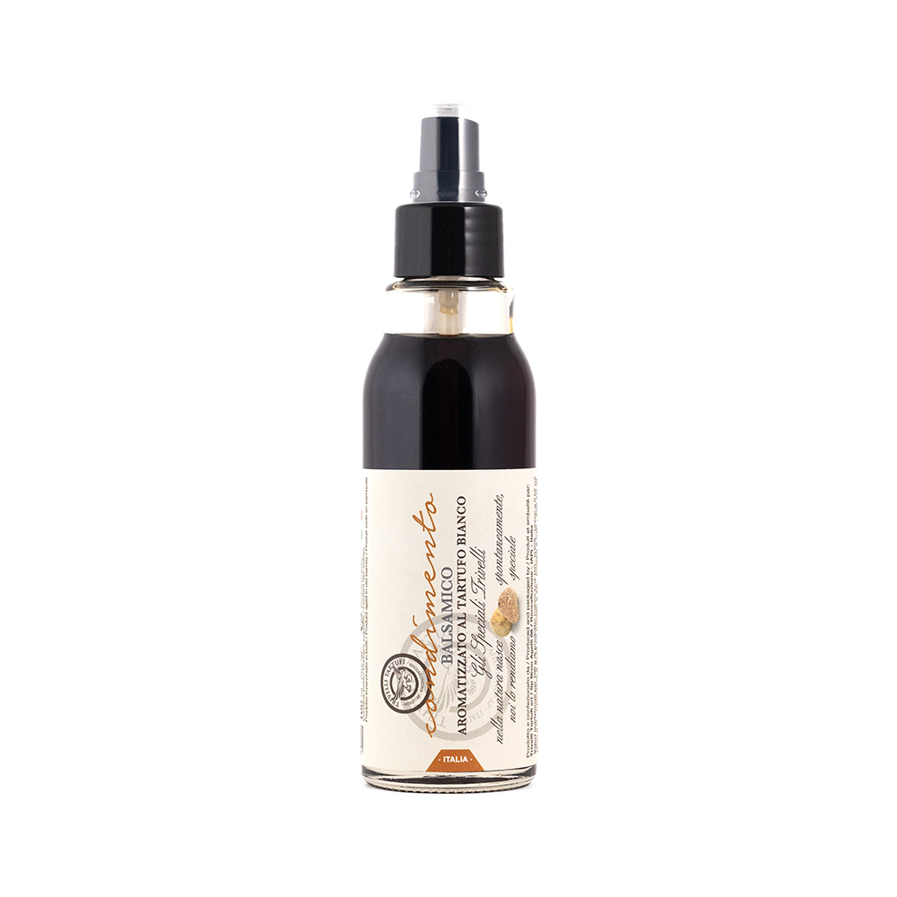 Der traditionelle Geschmack des Aceto Balsamico trifft die intensive Note der Schwarzen Winter Trüffel; eine bittersüße Dressing, die sich ideal mit feinen Salaten, Fleisch und Fisch kombiniert!