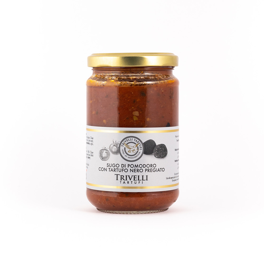 Tomaten Sauce mit schwarzen Winter Trüffeln („Perigord“) und Thunfisch, Trivelli