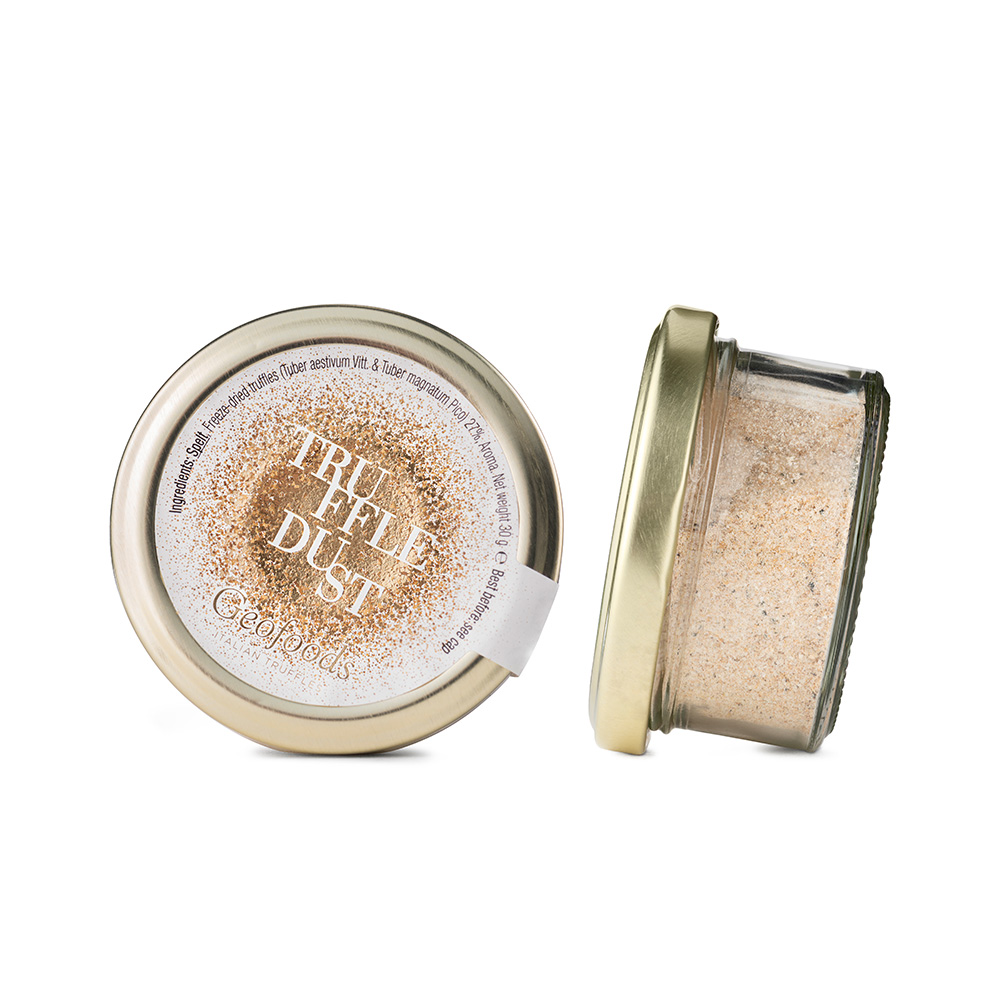 Dieses mit einem sehr hohen Anteil von weißen Trüffeln und schwarzen Sommertrüffeln versehene Trüffel Pulver verleiht jedem Ihrer Gerichte den Touch von Luxus! Perfekt für fast jede Art von Gerichten, von Risotto bis Pasta, von Fleisch bis Fisch und natürlich für Eiergerichte bis hin zu Gemüse und Saucen.